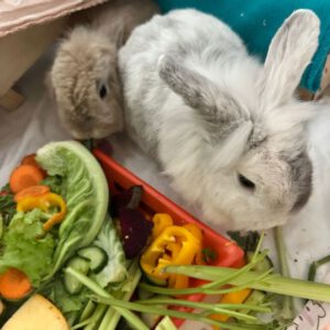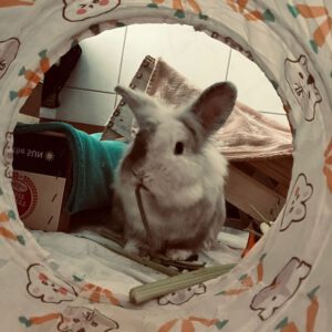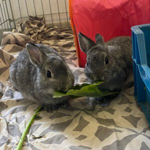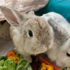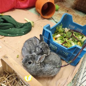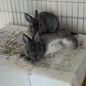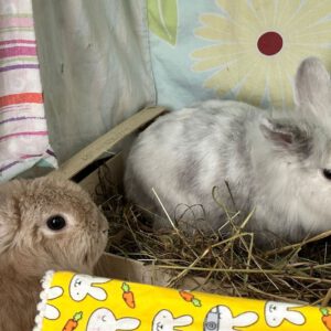 Die beiden kleinen Zwerge wurden in einem Karton vor der Tierheim Türe abgestellt. Das Alter der Beiden, vermutlich Brüder, kann daher auch nur geschätzt werden. Zimt und Zucker sind ein ganz tolles Gespann, kuscheln viel miteinander, unternehmen und entdecken alles gemeinsam. Vom Charakter könnten die Zwei aber unterschiedlicher nicht sein. Zimt ist dem Menschen sehr zugetan, lässt sich kuscheln und ist zutraulich. Zucker dagegen ist eher vorsichtig, möchte lieber keine Berührung und ergreift eher die Flucht. Bei Zucker konntze leider nur ein Hoden gefunden werden und somit sollte er vorsichtshalber nicht zu Weibchen vermittelt werden. Aufgrund des noch sehr jungen Alters sind sie sehr bewegungsfreudig, aktiv und neugierig. Sie wünschen sich gemeinsam ein spannendes Gehege mit vielen Verstecken, erhöhten Aussichtspunkten und kaninchengerechter Beschäftigung .