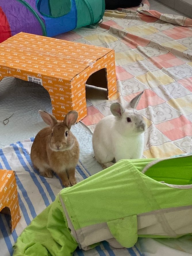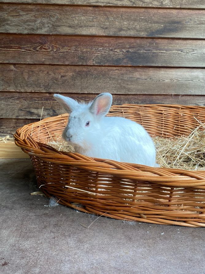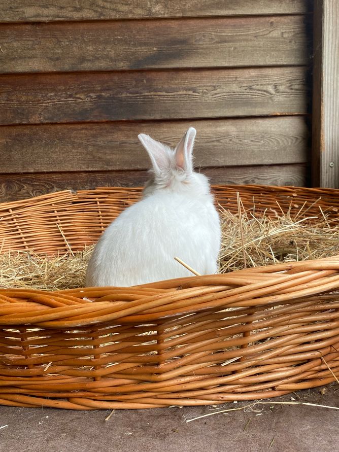 Cäsar kam zusammen mit seinem Bruder Cappucchino aus einer nicht artgerechten Haltung zu uns und die Beiden sind nun auf der Suche nach einem liebevollen Zuhause mit viel Platz zum toben. Die Beiden könnten gemeinsam aber auch getrennt zu einer Häsin vermittelt werden. Menschen gegenüber ist er sehr zutraulich und aufgeschlossen. Cäsar hat einen großen Bewegungsdrang und erkundet neugierig das Gehege und genießt die Aussicht auf erhöhten Plätzen. Mit seiner frechen und lieben Art ist er der perfekte Begleiter für Kaninchenliebhaber, die viel Zeit und Lust haben sich mit dem Kaninchen Bub zu beschäftigen. Er ist ein cleverer Kerl und über Futter Belohnung sehr lernwillig und hoch motiviert beim erlernen neuer Tricks. Derzeit machen wir mit ihm Clicker Training, wo er mit voller Begeisterung dabei ist. Die Zwei leben derzeit in Außenhaltung