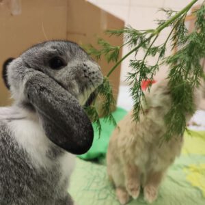 Marshmallow kam gemeinsam mit Mocca zu uns ins Tierheim weil bei der Familie Nachwuchs ins Haus steht. Aktuell lebt er bei uns gemeinsam mit zwei Weibchen in Innenhaltung. Der kastrierte Bub ist vom Charakter her sehr entspannt, lässt sich zugleich auch mal für kleine Herausforderungen bei der Futtersuche begeistern. Der gelassene Widderbube kommt super mit seinen beiden Mitbewohnerinnen zurecht und ist auch an den menschlichen Besuchern interessiert. Als ruhiger Begleiter freut er sich vor allem über ein gemütliches Zuhause mit vielen Plätzchen, die auch mal zum Verweilen einladen. Trotz seiner Gemütlichkeit sollte sein Bewegungsdrang nicht unterschätzt werden, denn er ist sehr unternehmungslustig und erkundet voller Neugier jeden Winkel. Er kann gemeinsam mit Mocca, aber auch zu einer lieben Kaninchenfreundin vermittelt werden.