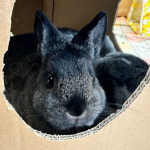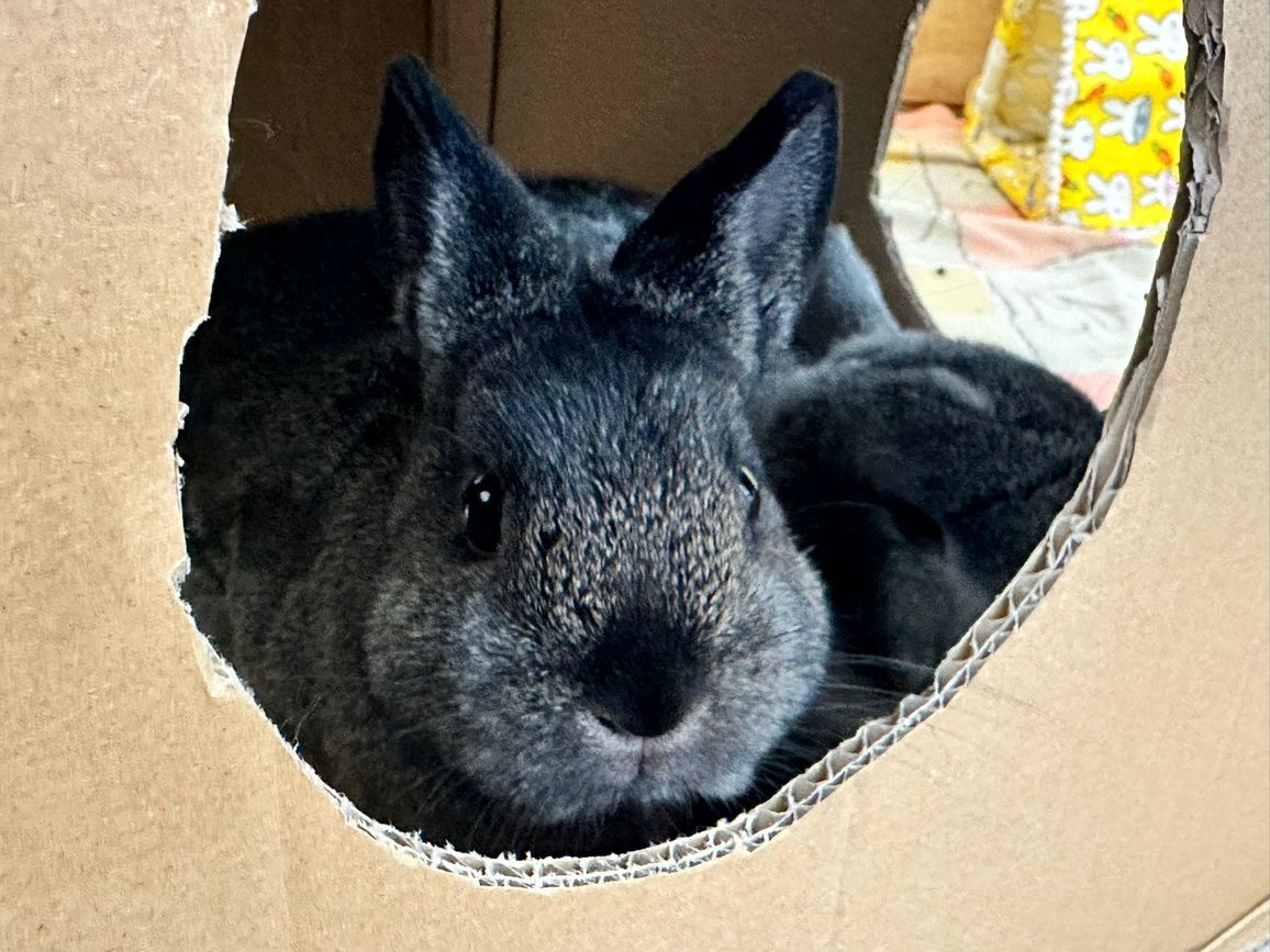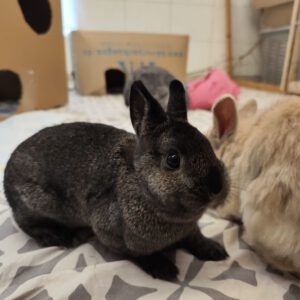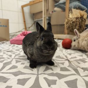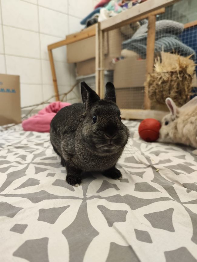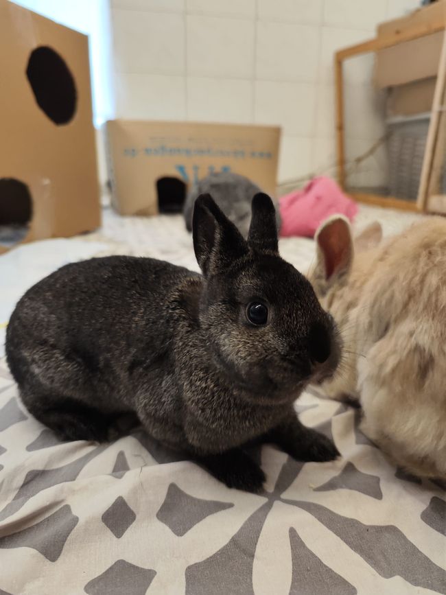 Mocca kam gemeinsam mit Marshmallow zu uns ins Tierheim da bei der Familie Nachwuchs ins Haus steht. Bei uns lebt sie aktuell in Innenhaltung mit zwei weiteren Kaninchen zusammen. Sie nutzt den ganzen Platz im Gehege zum Erkunden und Entdecken. Mit ihrer zurückhaltenden Art benötigt Mocca etwas Zeit um Vertrauen zu fassen, ist zugleich jedoch sehr an ihrer Umgebung interessiert und liebt es von Versteck zu Versteck zu flitzen. Von Erhöhungen oder dem Fenstersims aus behält sie alles im Blick und beobachtet alles um sie herum mit vorsichtiger Neugier. Wer ihr Zeit und Geduld zum Auftauen schenkt wird die Kleine schnell ins Herz schließen und sich an ihrer wuseligen Art erfreuen. Sie sucht nach einem Zuhause, das ihr viele Versteckmöglichkeiten und abwechslungsreiche Einrichtung bietet. Sie kann gemeinsam mit Marshmallow oder zu einem anderen lieben Kaninchenfreund vermittelt werden.