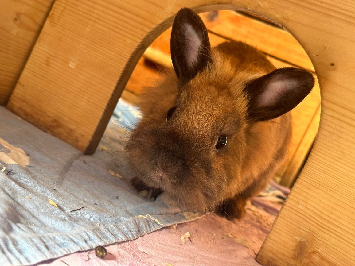 Olina wurde, zusammen mit 4 weiteren Kaninchen, einfach in einer Transportbox bei einer Pizzeria in Meckenbeuren abgestellt. Einen Tag vor Heiligabend. Sie ist super herzig und verträglich mit Artgenossen, egal welches Geschlecht. Sie lebt derzeit in einer kleinen gemischten Gruppe und zeigt sich dort absolut unkompliziert und sozial. Menschen gegenüber ist sie zwar total neugierig aber eher vorsichtig und zurückhaltend. Da sie vermutlich noch ein jüngeres Tier ist, hat sie ordentlichen Bewegungsdrang und benötigt ein ausreichend großes Gehege. Artgerechte Beschäftigung, Artgenossen und eine abenteuerliche Gestaltung des Geheges ist für sie Voraussetzung.