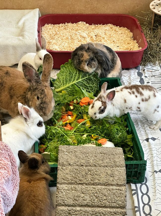 Olivia wurde, zusammen mit 4 weiteren Kaninchen, einfach in einer Transportbox bei einer Pizzeria in Meckenbeuren abgestellt. Einen Tag vor Heiligabend. Sie ist sehr lieb und verträglich mit Artgenossen beiden Geschlechtes. Sie lebt derzeit in einer kleinen gemischten Gruppe und zeigt sich da völlig unkompliziert. Menschen gegenüber ist sie zwar total neugierig aber eher zurückhaltend und vorsichtig. Vermutlich ist sie noch ein jüngeres Tier und daher noch sehr quirlig und aktiv. Sie wünscht sich ein großes Gehege mit vielen Verstecken, Abwechslung in der Gehege Einrichtung und natürlich Kaninchen Gesellschaft. Da Olivia ein Rex-Mischling ist eignet sie sich nicht für die ganzjährige Außenhaltung.